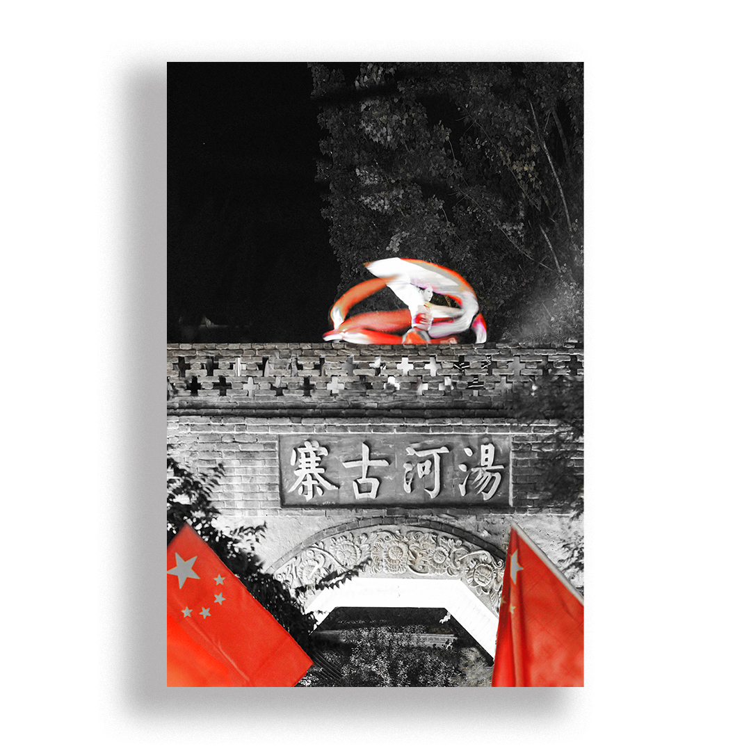 À travers cette série, née de mes voyages répétés en Chine, j’ai choisi mes photos dans le noir et blanc, ne conservant que le rouge comme unique couleur.