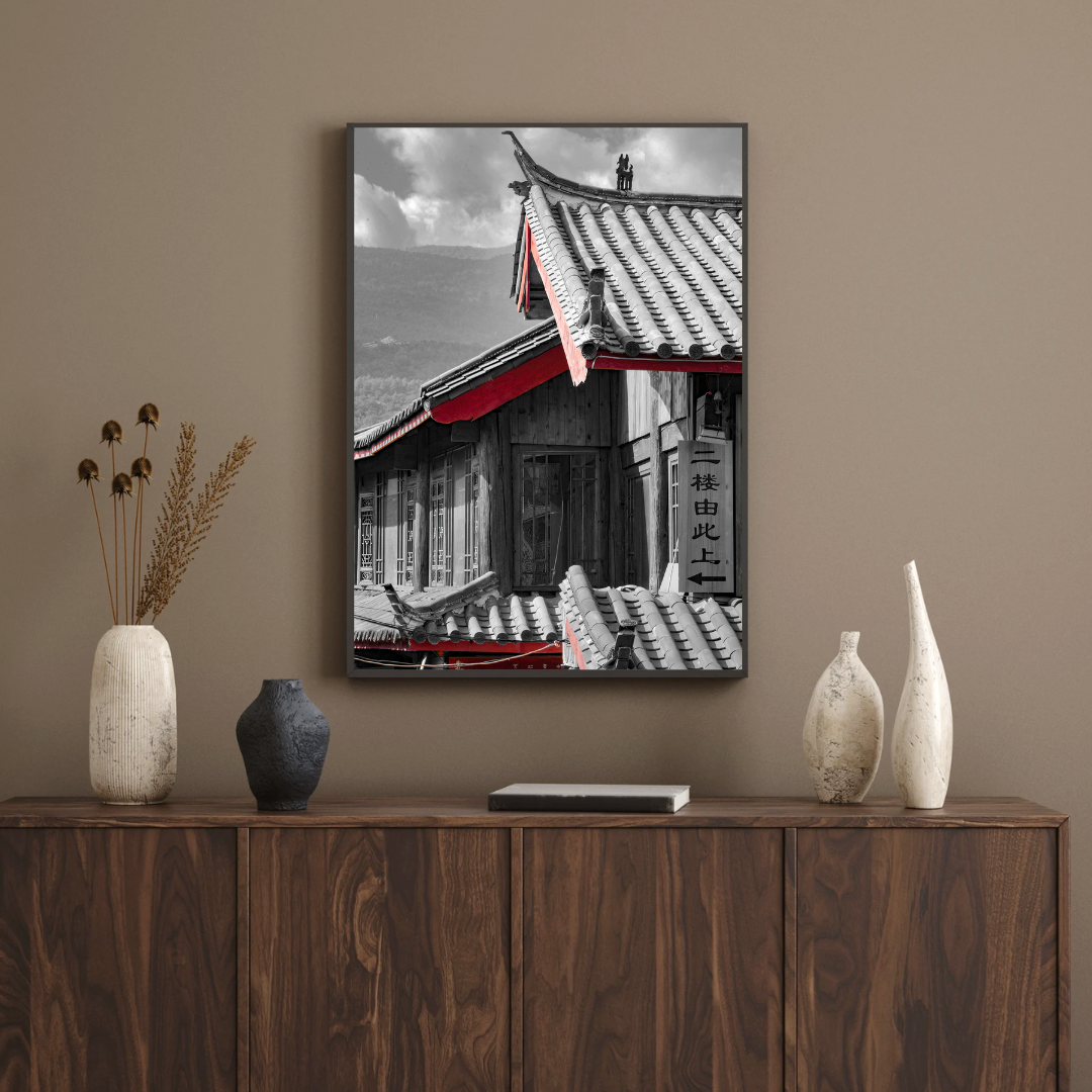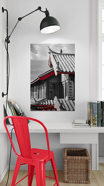 À travers cette série, née de mes voyages répétés en Chine, j’ai choisi mes photos dans le noir et blanc, ne conservant que le rouge comme unique couleur.