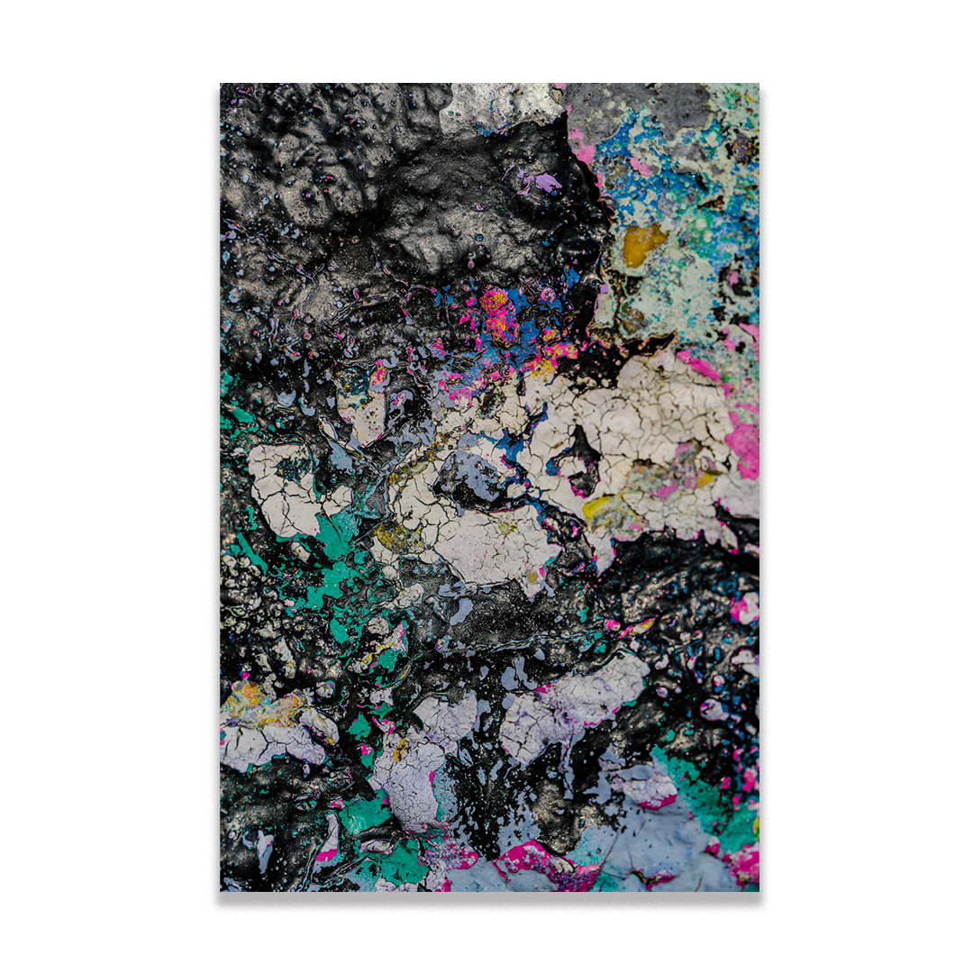 Cette série plonge au cœur des matières, capturant de très près les vestiges d’un street art effacé ou l’érosion d’une coque de bateau.