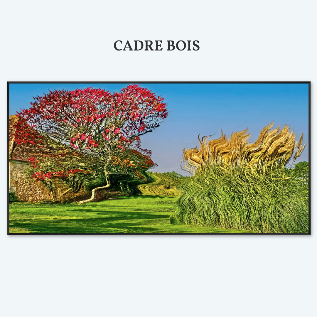 Paysage de Dordogne interprété façon photo Raku® qui s’inspire de l’impressionnisme, évoquant le mouvement et la vibration des couleurs à la manière de Van Gogh ou de Raku® Toscane .