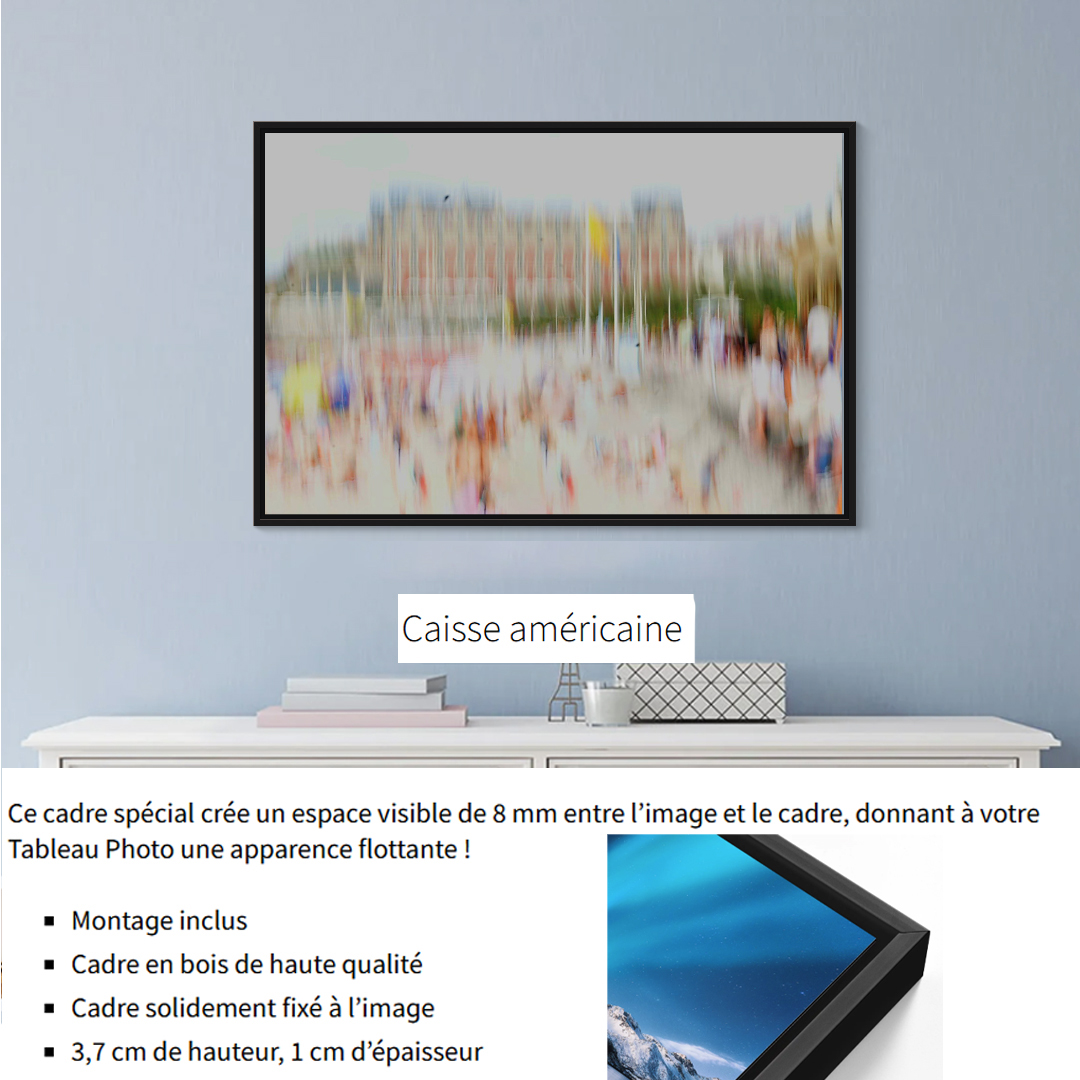 Encadrement en caisse américaine en option: Ce cadre spécial crée un espace visible de 8 mm entre l’image et le cadre, donnant à votre Tableau Photo une apparence flottante.